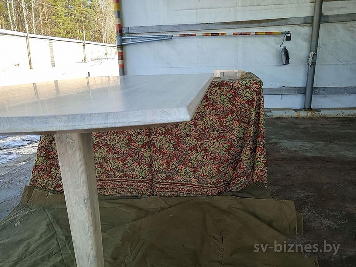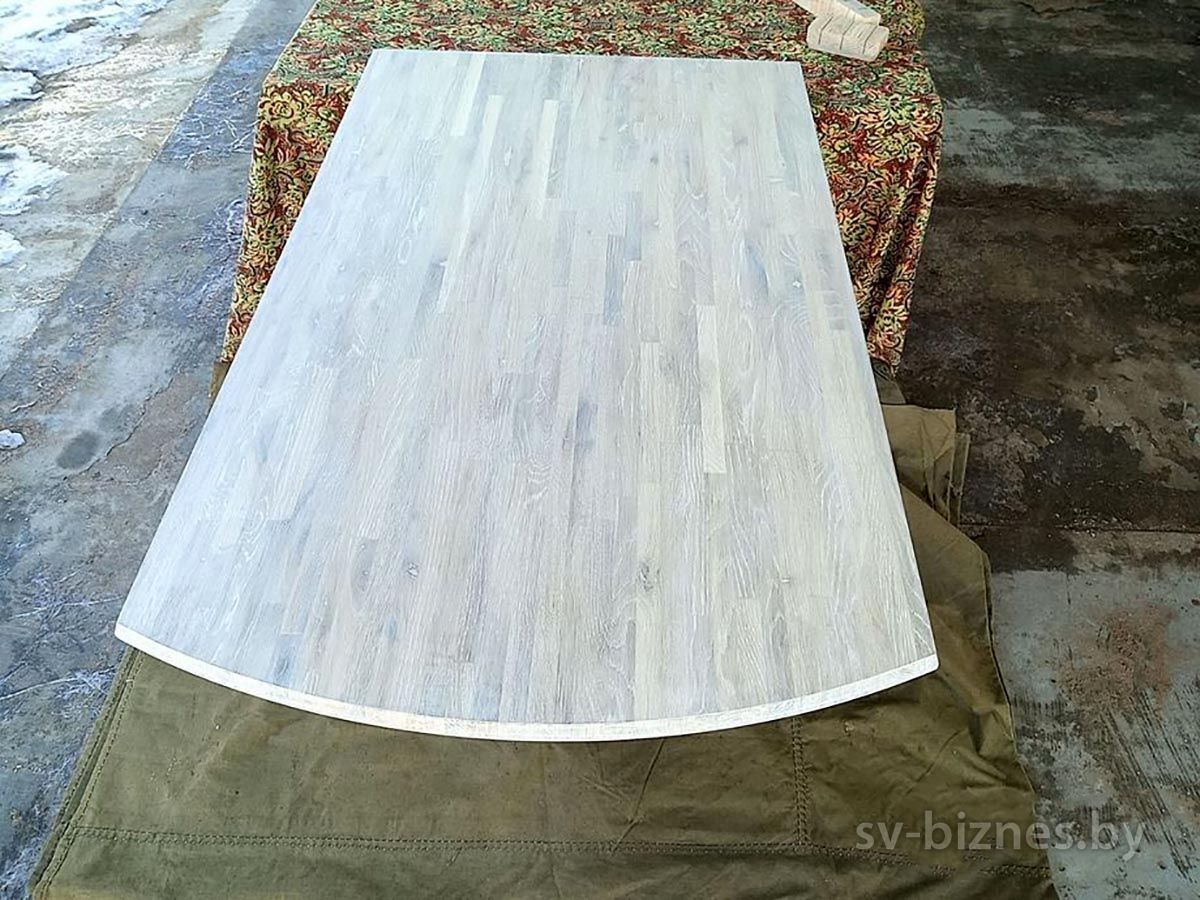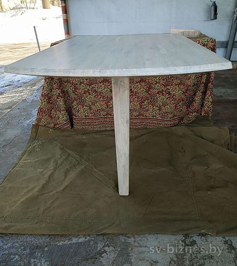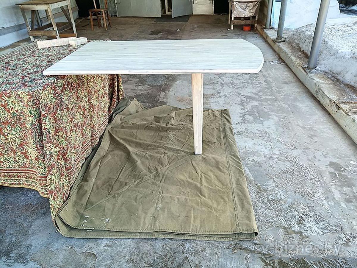 Описание Стол кухонный дубовый (из ламелей) на одной ножке (крепится к стене). Покрыт твердым масловоском Borma. Ширина 70 см, длинна 118 см, высота 75 см.