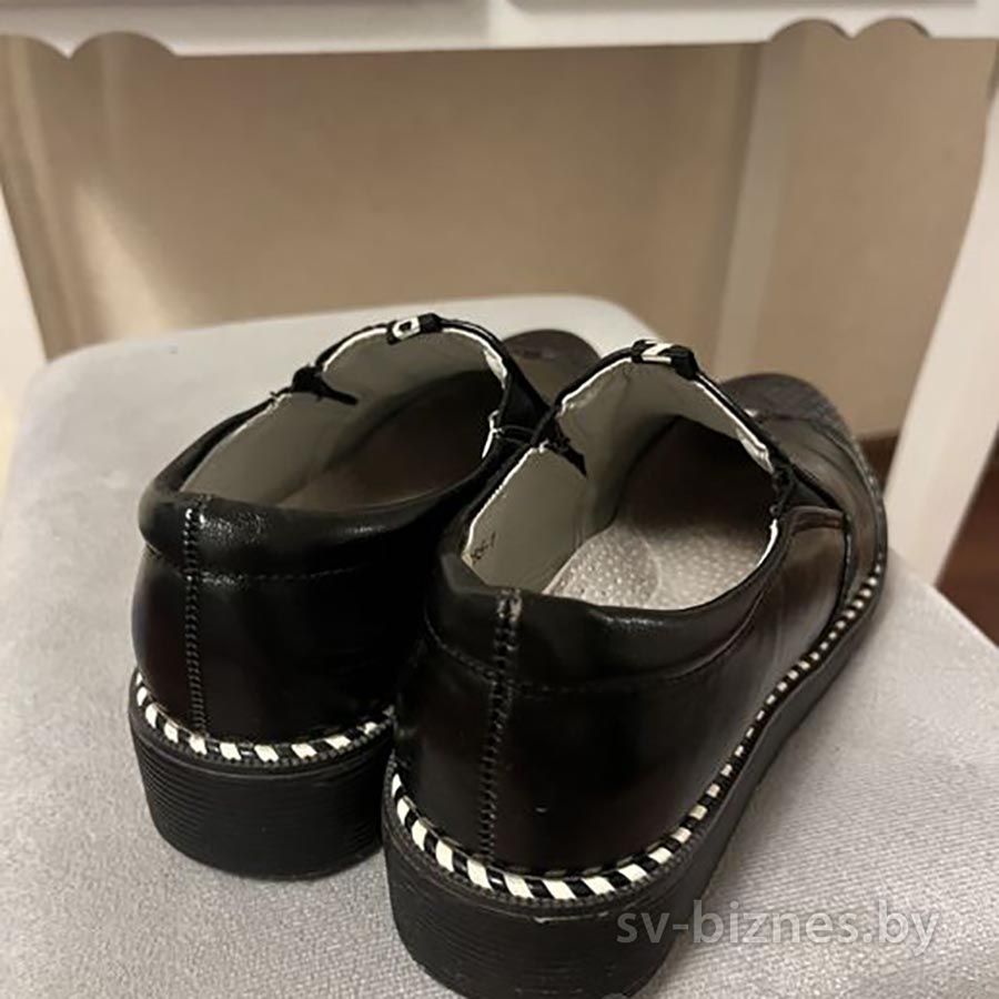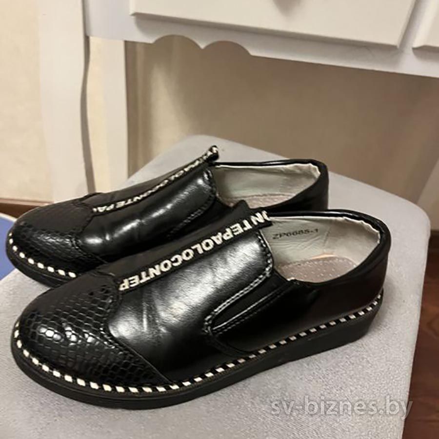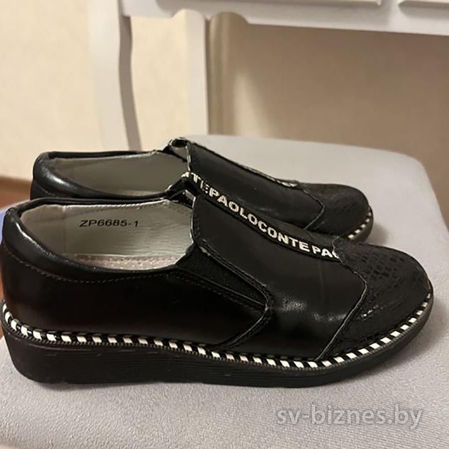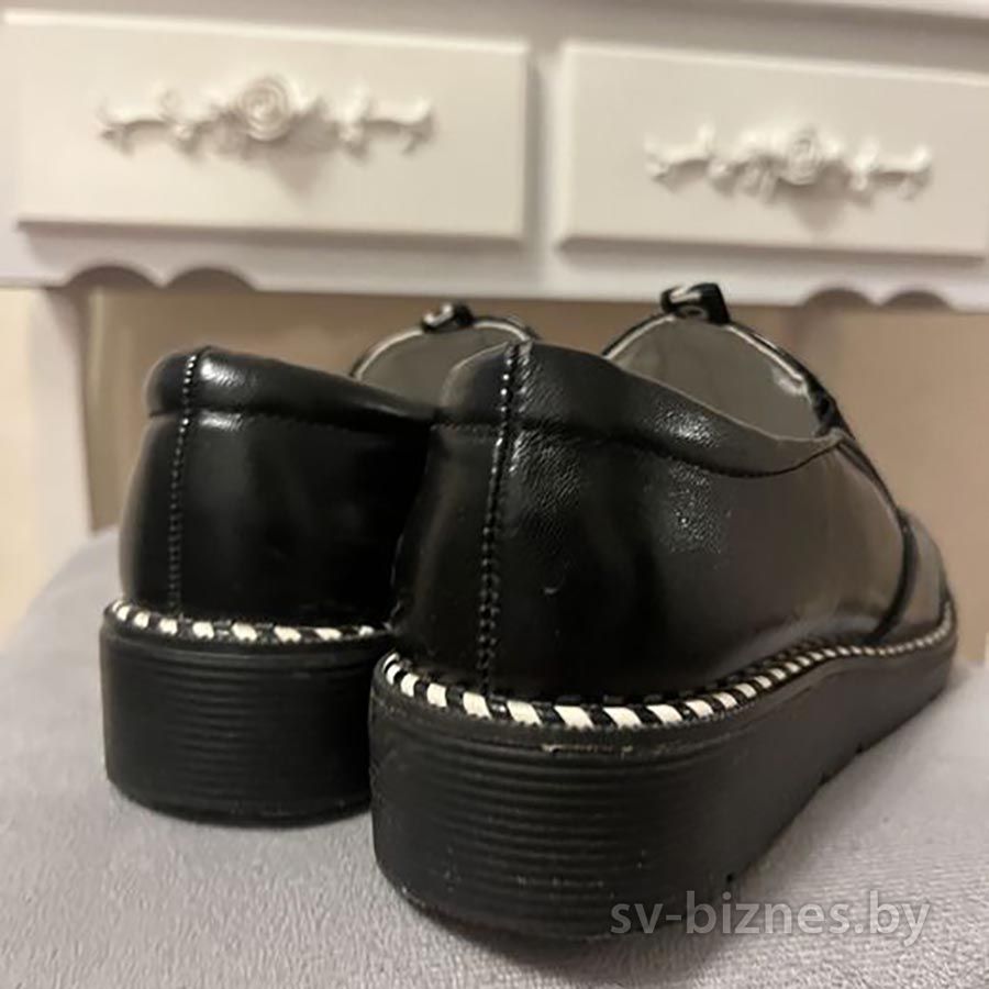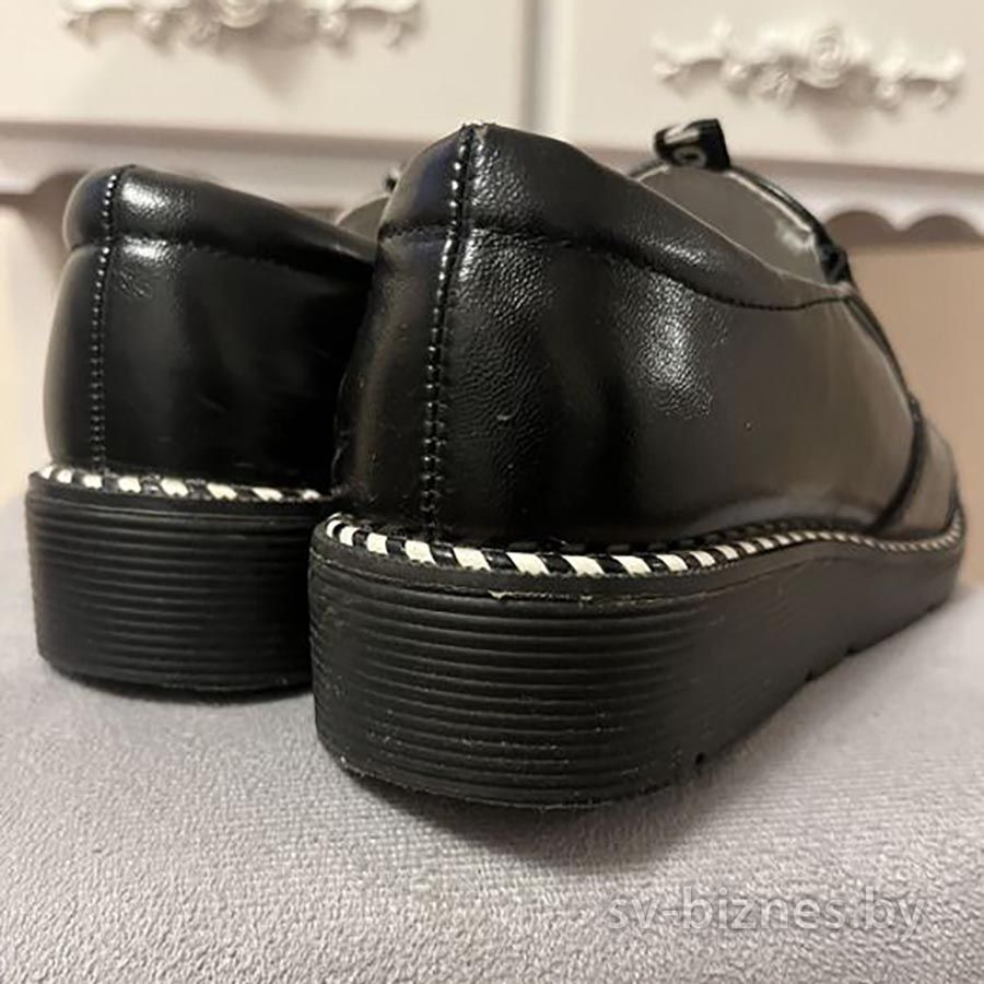 Описание Продам туфли черные для девочки, размер 34, по стельке 21 см. Отличная модель, с резинкой для объема ноги. Отличное качество, обуты несколько раз, легкие. Вышлю почтой.