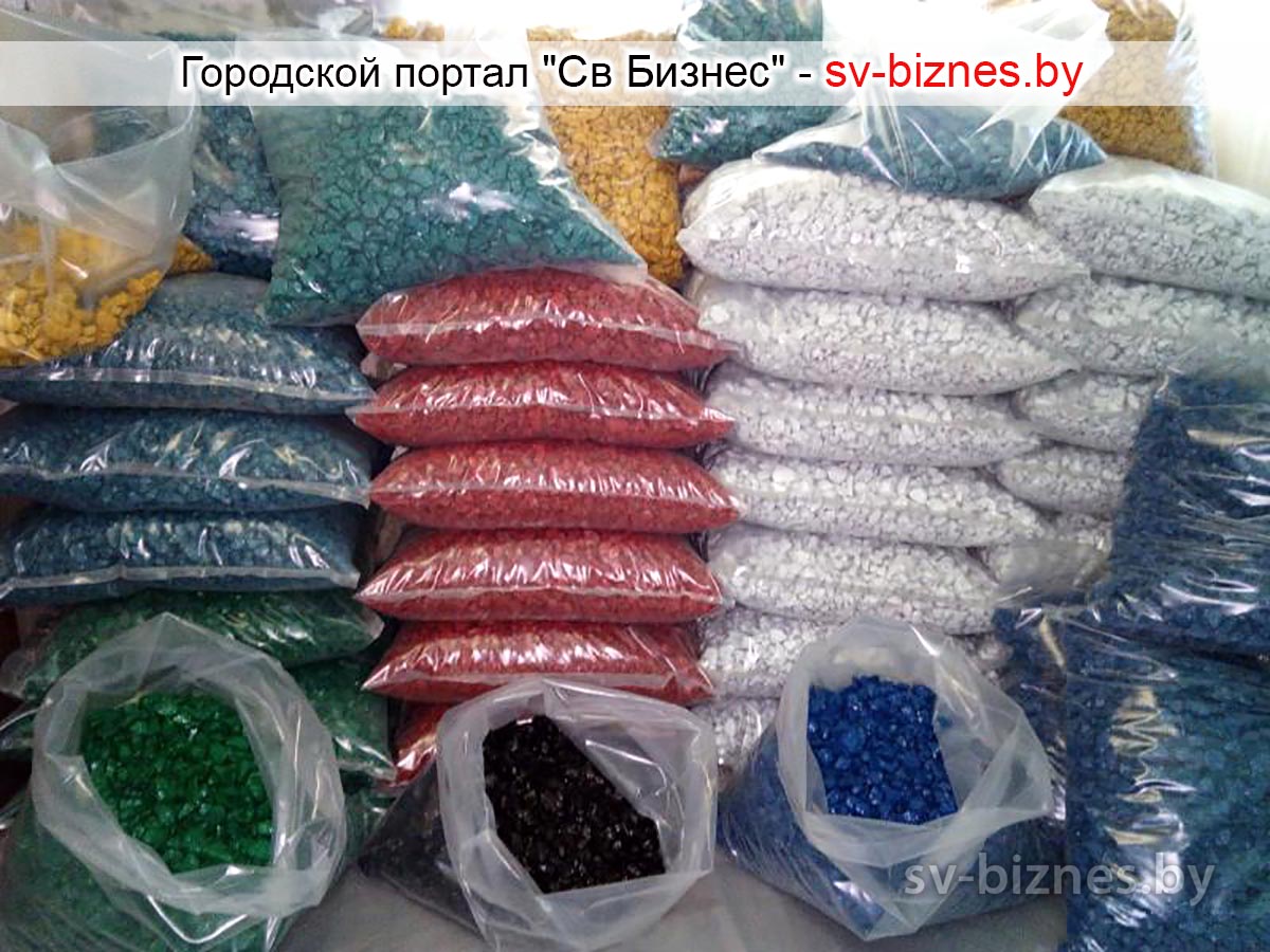 Щебень декоративный окрашенный и мраморно-белый, фракции 5-10, 10-20...
